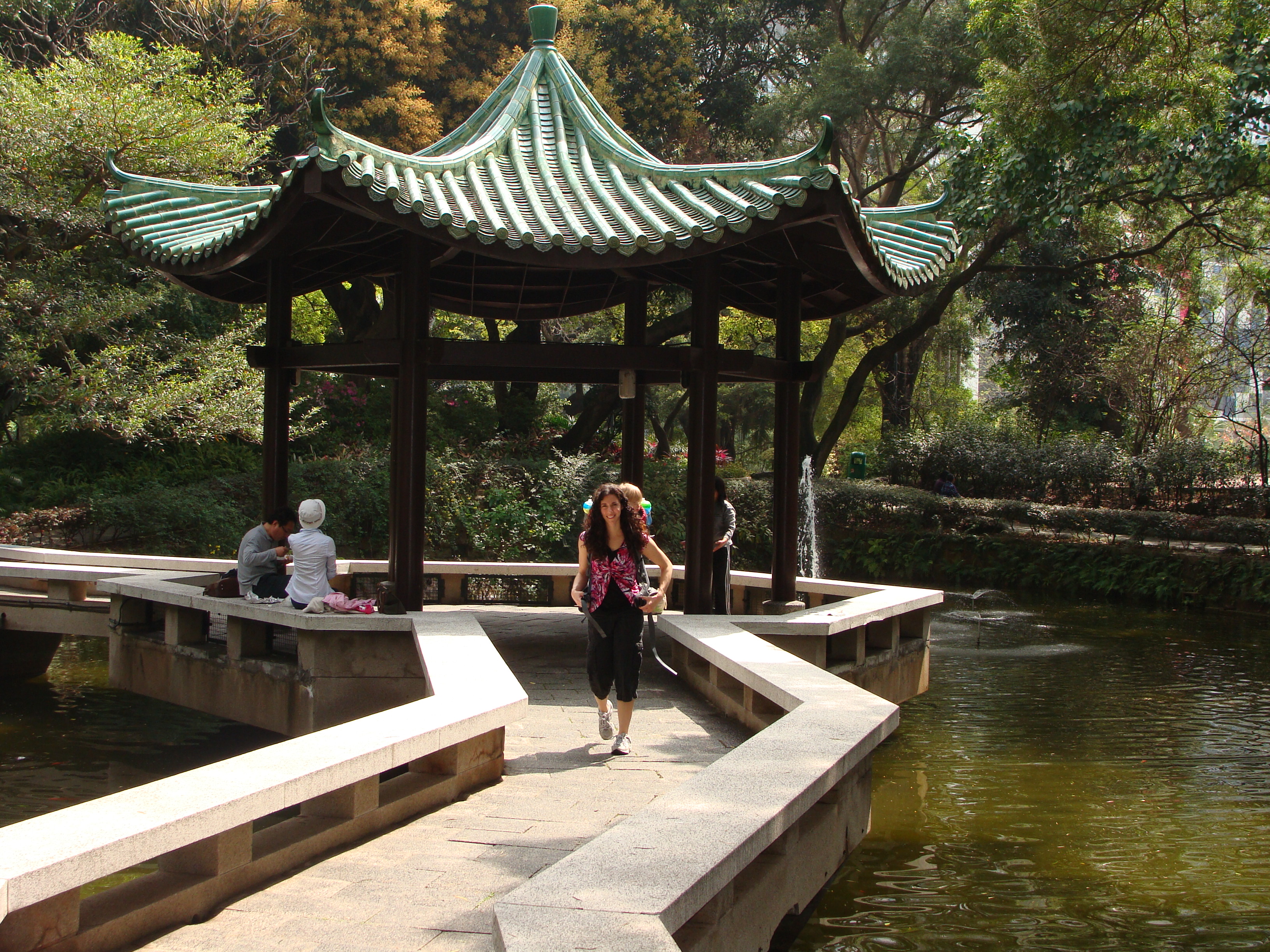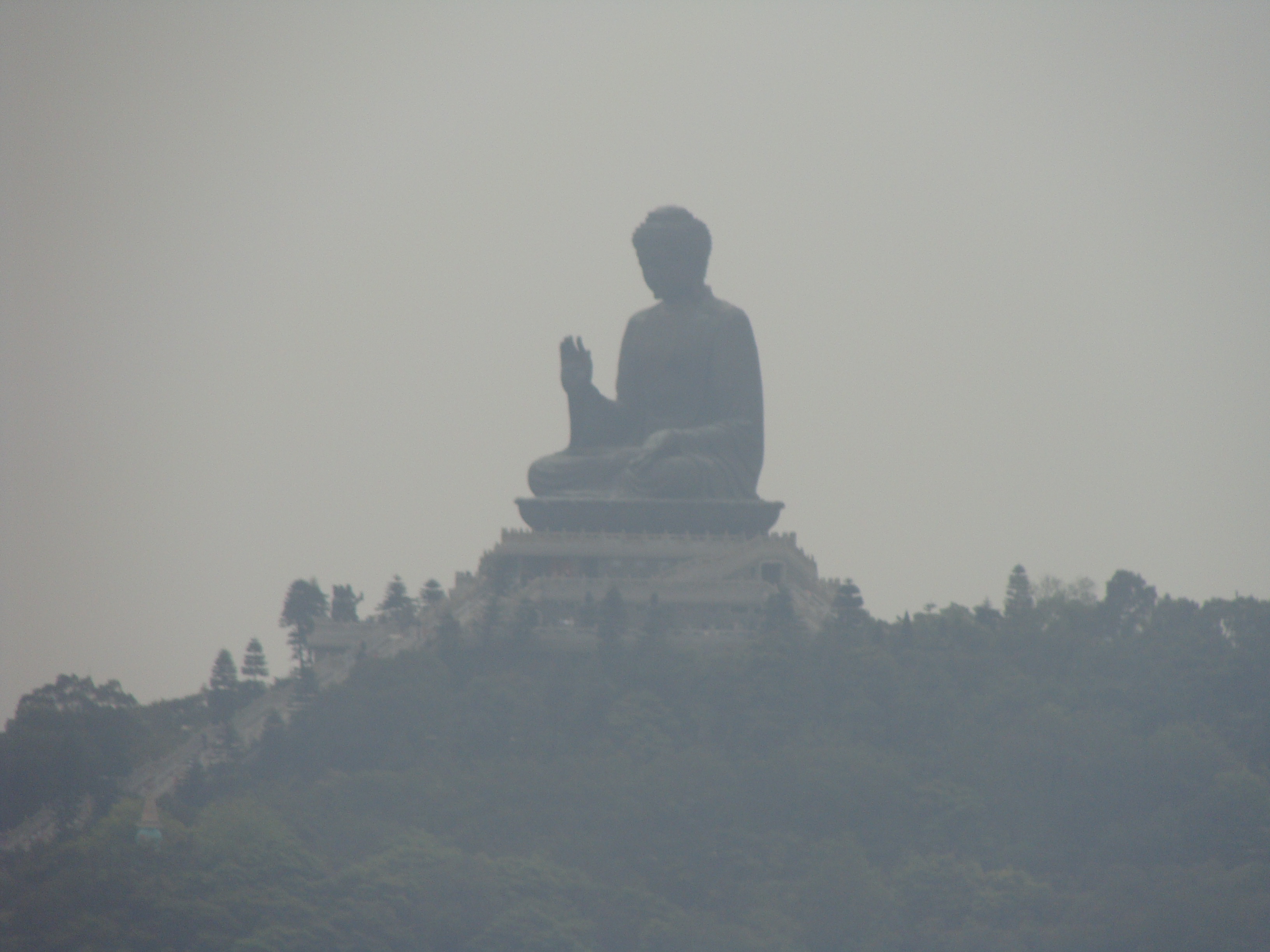 The wait to ride the cable car was actually rather long. I think we stood in line for an hour and a half. That was somewhat unexpected, and the long wait made me more nervous. Finally, it was our turn to board. The Ngong Ping cable car sailed gently out of the station and out over the South China Sea. Maybe it was the bravery and kindness of my sweet little girl, maybe it was the more horizontal journey that reminded me of clouds blowing gently through the sky, or maybe the length of the ride gave me time to work through my fear, but the ride was actually very enjoyable. We passed over water and mountains. Ancient foot trails along the ridges of the mountains were visible below us. The water sparkled when the sun managed to peak out from behind the clouds. Our family had a relaxing (eventually) time together talking and singing as we sailed through the sky. I almost wish I had been brave enough to ride one of the cars with a glass bottom. If we ever go back, I think I’ll give it a try.