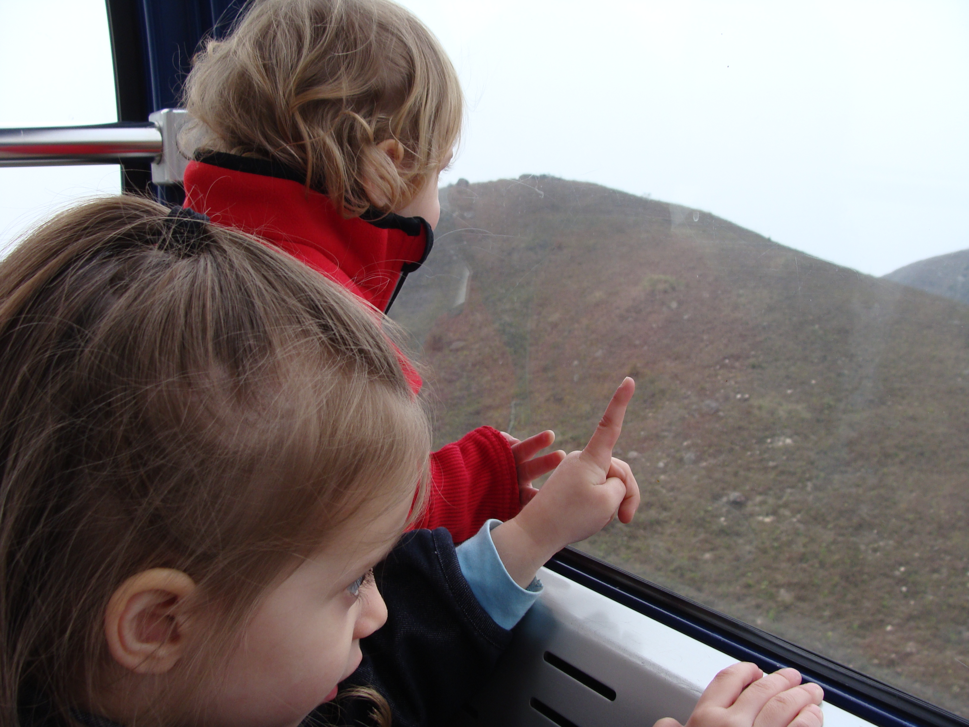 The Ngong Ping cable car was not my first experience with a cable car. About a year previously we had ridden the Sandia Peak Tramway outside of Albuquerque. I read that it was one of the longest cable cars in the world, and was so excited to ride to the top of the mountain. I’m usually not that scared of heights. Flying in planes doesn’t bother me; hiking near steep mountain drop-offs doesn’t usually bother me. So, I was unprepared for the terror that I would feel as our cable car soared out over jagged rocks, slowly moving up the side of the Sandia Peak. While my then almost two year old exhilarated in the ride up the side of the mountain, I sat crouched down on the floor of the cable car trying not to envision the precariousness of a single cable holding up the cable car with a drop below onto jagged rocks that would almost certainly mean instant death if something went wrong. Meanwhile, my delighted little girl giggled and said, “Pick me up, mama! Pick me up!” So, I alternated between holding her up and cringing in terror.