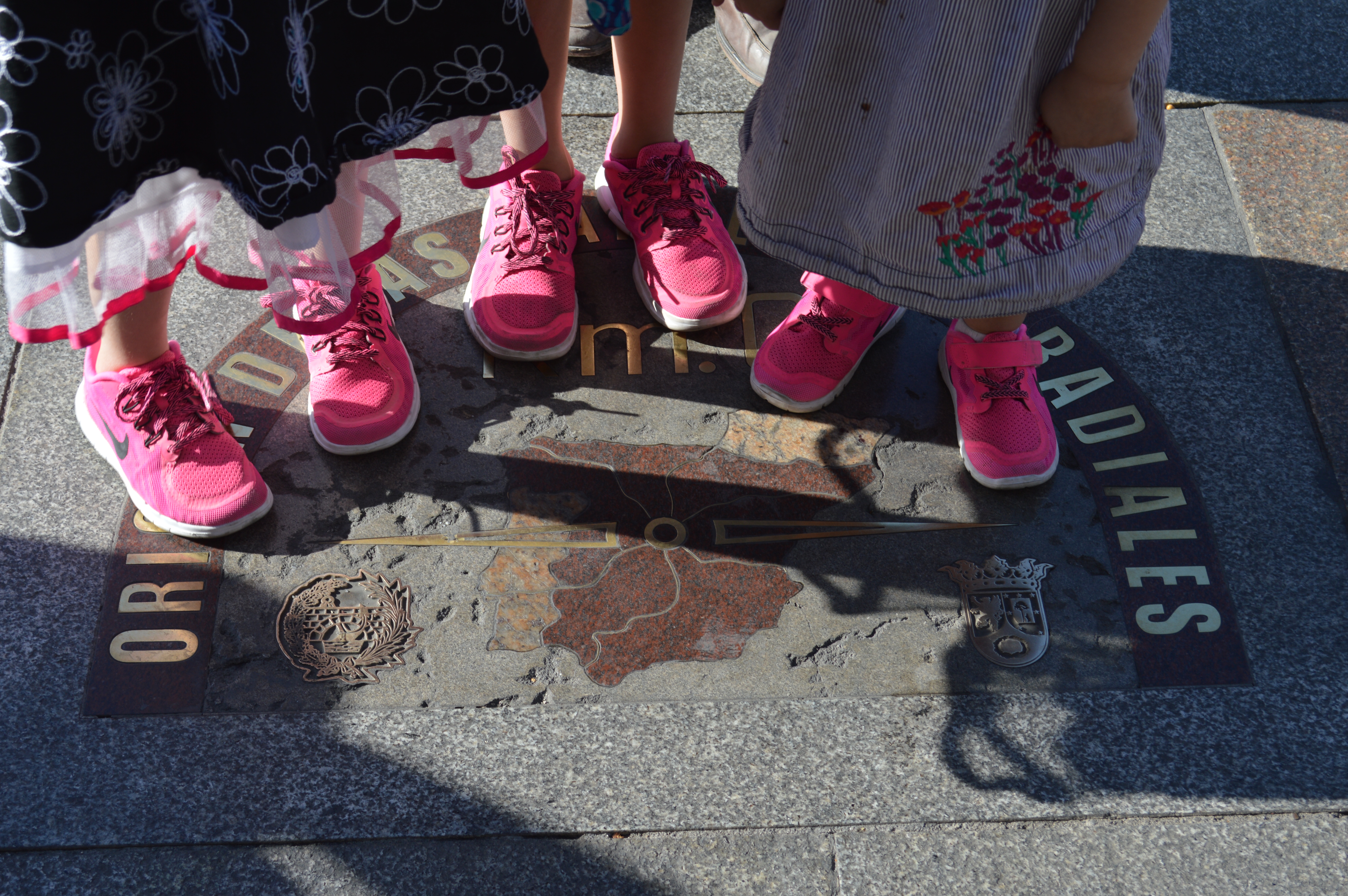 There were many tourists standing around waiting for the turn to take pictures of the famous zero kilometer marker. Our turn came, and my three beautiful daughters stood on the marker in their matching pink tennis shoes, solely to appease their mother. After we were finished taking the photo, I took a small moment to stand on the marker myself. I couldn’t come all this way and miss my chance to stand in the center of Spain, now could I?
